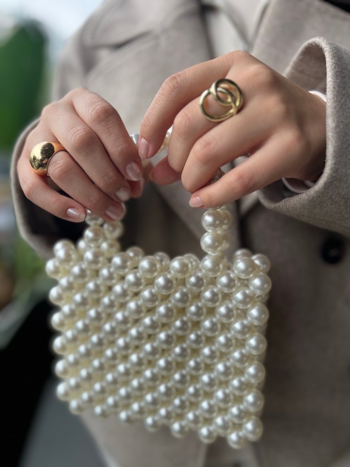 İnci işlemeli çanta