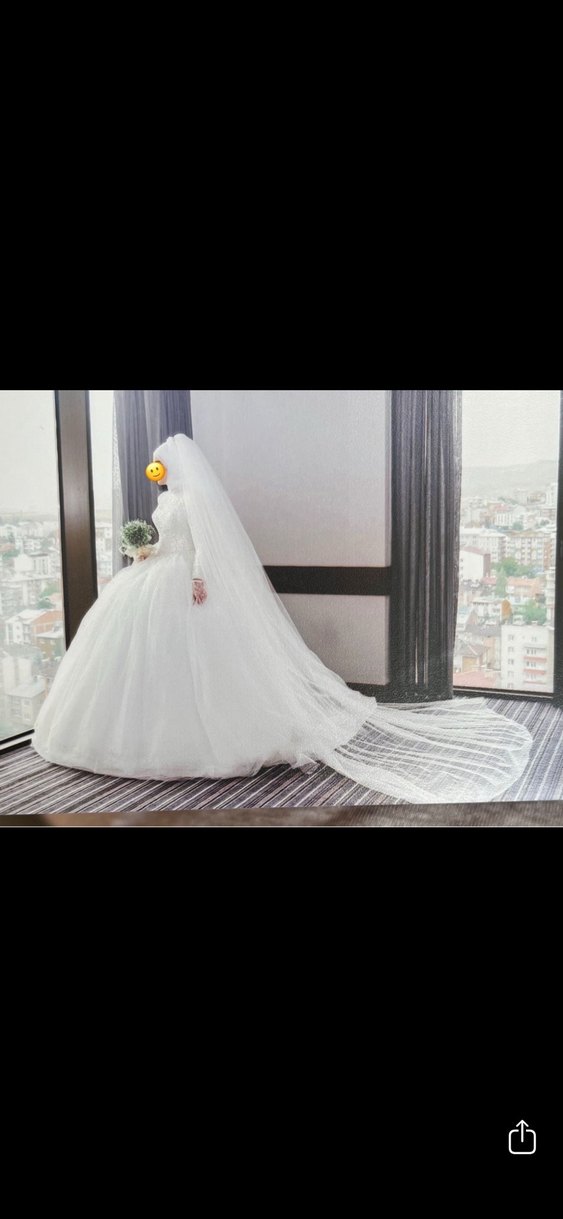 Uzun beyaz prenses gelinlik, straplez oturan üst kısmı ve el işlemeli inci bedeniyle zarafeti minimalizmle buluşturuyor. Nikah törenimde 2 saat kullanıldı özel tasarımdir 36/38/40 uygundur
