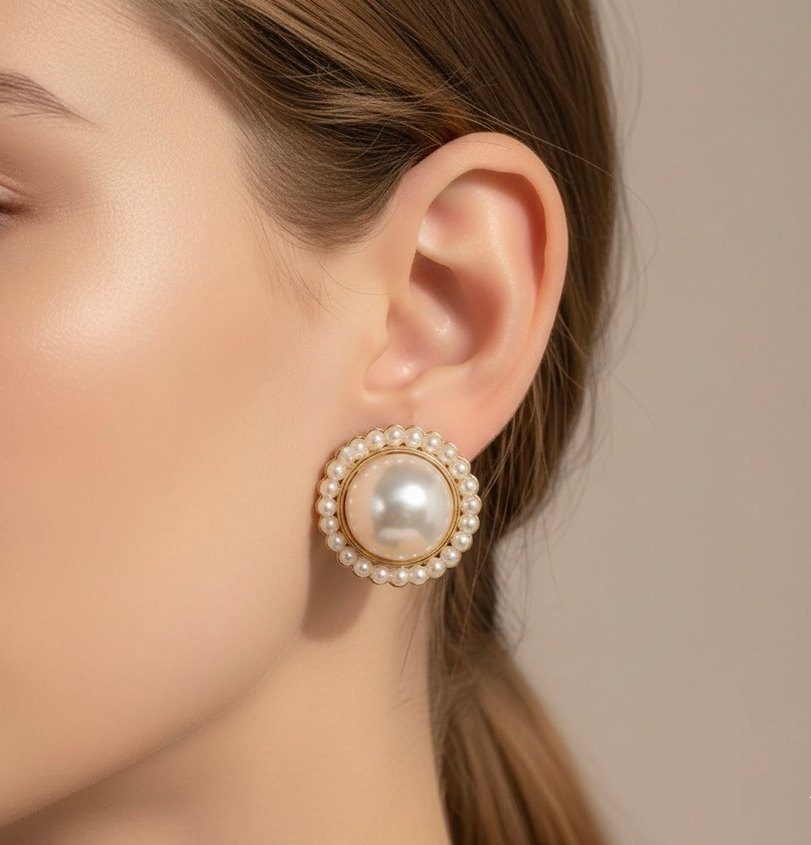 İnci İşlemeli Vintage Küpe