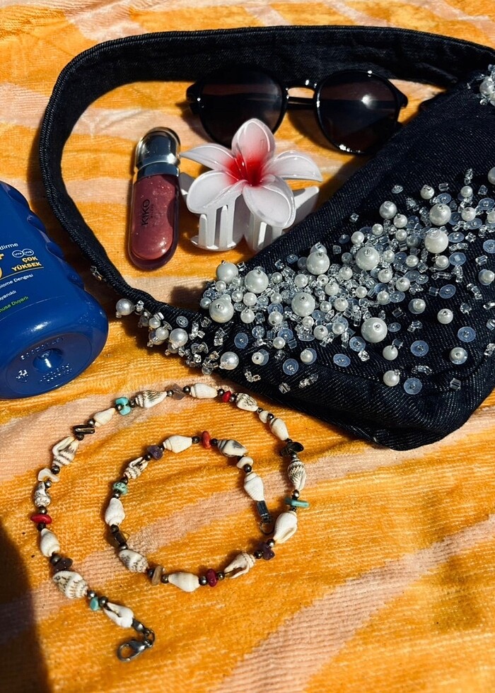 Hiç kullanılmamıştır. El işlemesi ve çanta dikimdir.