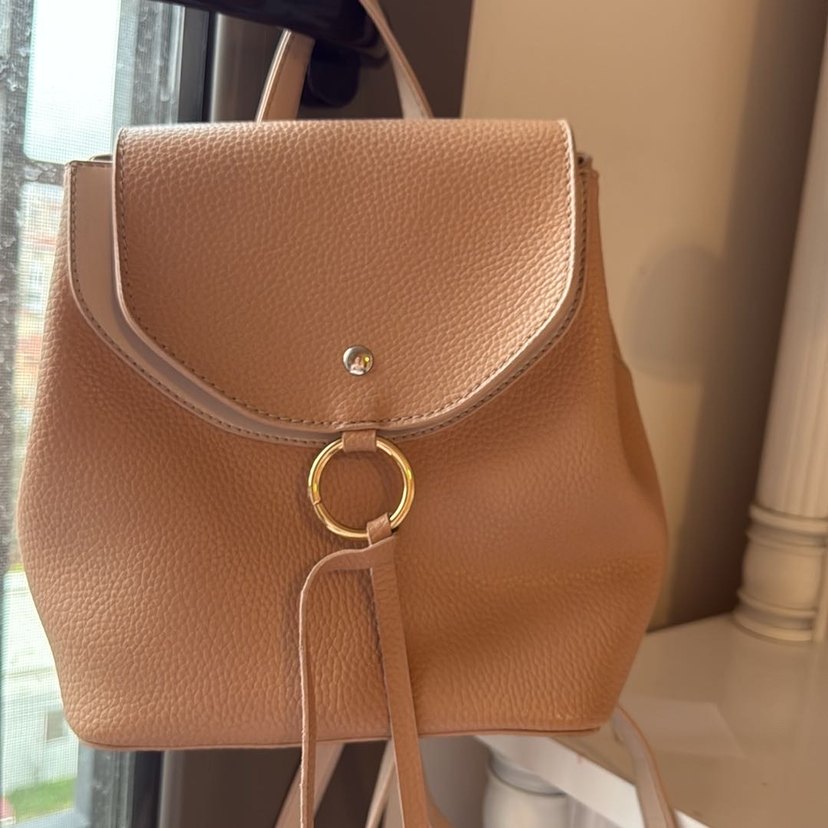 Üründe hiçbir deforme yoktur.Sırta takılabilir, pudra pembesi renginde, içine rahatlıkla eşyalarınız sığabilir Bej renkte deri malzemeden yapılmış, tokalı kapaklı, minimalist ve çağdaş tarzda kadın sırt çantasıdır. Günlük kullanım için uygundur.