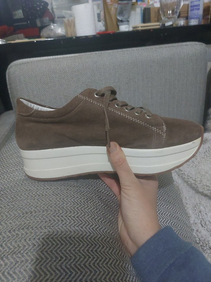 İNCİ marka Bej süet malzemeden yapılmış, platform topuklu kadın spor ayakkabısı. Düz ve desen içermeyen tasarımıyla günlük sokak stili için uygundur. Rahat ve şık bir görünüme sahiptir. 40