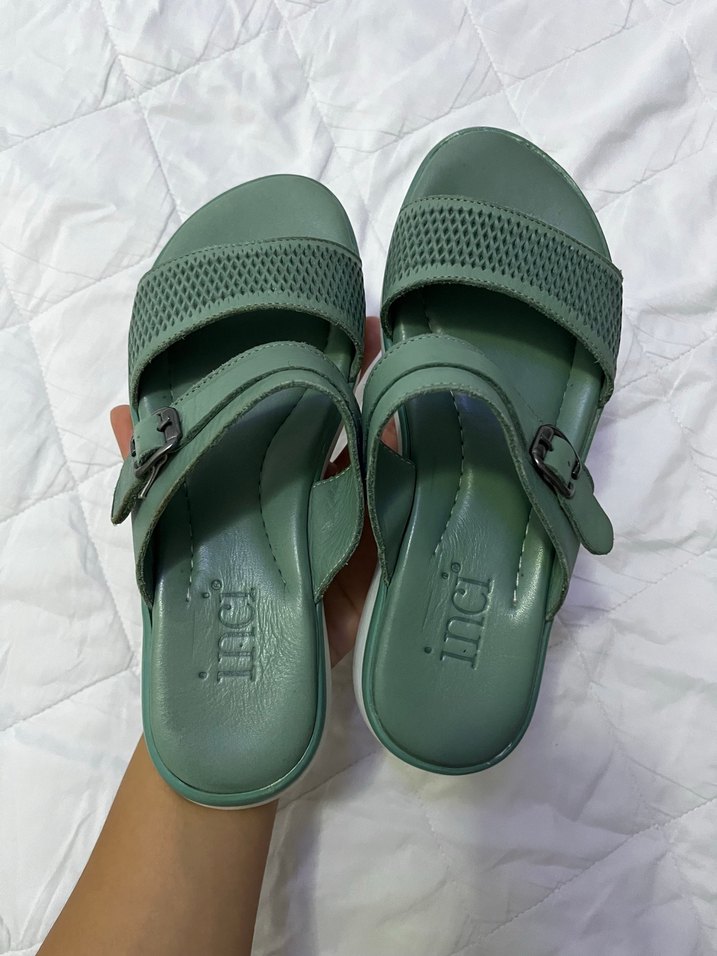İnci marka Yeşil Kadın Dolgu Topuklu Terlik