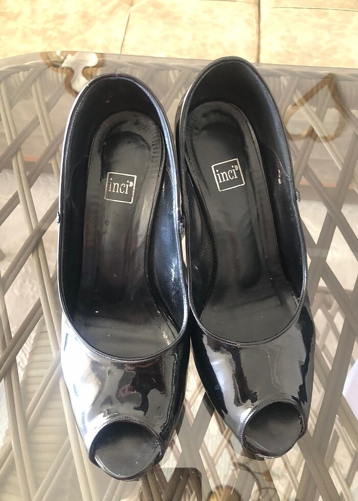 Ürün bir kaç defa özel günlerde kullanılmıştır. 38 numara siyah rugan deridir. Orijinal inci markadır. Kullanıma bağlı çok ufak deformasyonlar fotoğraflarda mevcuttur.