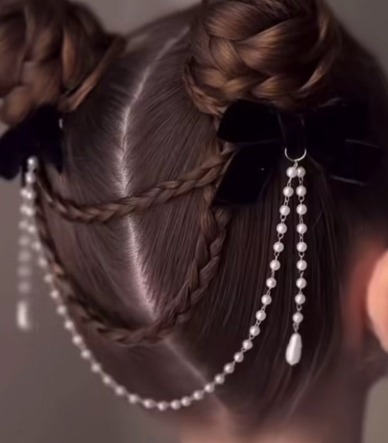 İnci Sallantılı Zincir Detaylı Saç Tokası