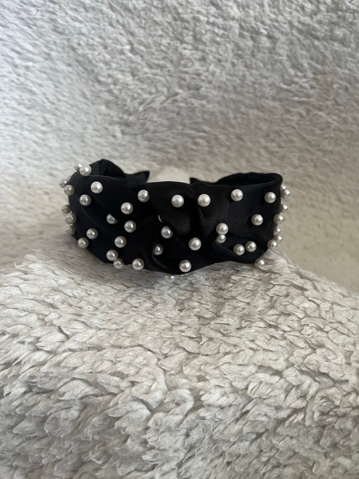 Sentetik kumaştan yapılmış, inci süslemeli siyah gotik tarzda saç bandı, modaya uygun görünüm için ideal.