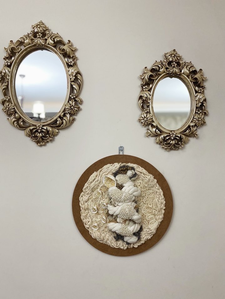İncilerin deniz kabuğundan tane tane dökülmesi, bu sahne anlık tasarımımda gelişti. İlk dekorasyondan çıkan bazı talihsizliklerle beraber bunu bir tabloya dönüştürüp yeni koleksiyon için de bana bazı fikirler oluşturdu. Bazı değişimleri gidiyorum . Evinize lüks bir dokunuş katacak, el tasarımı ve bohem bir dekorasyondur.