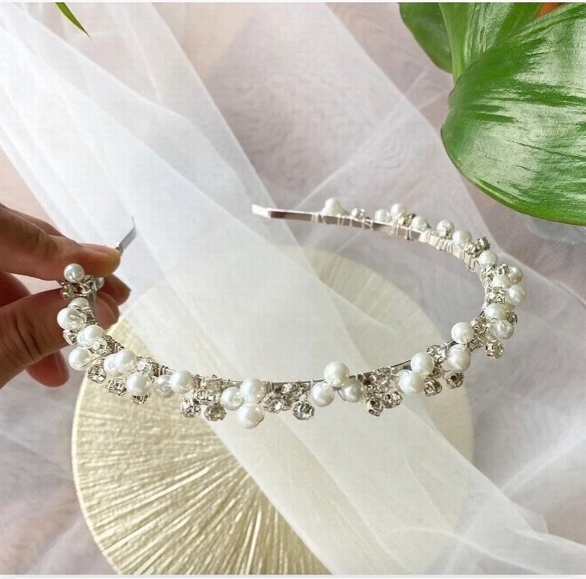 #İnci taş detaylı gümüş renk gelintacı#