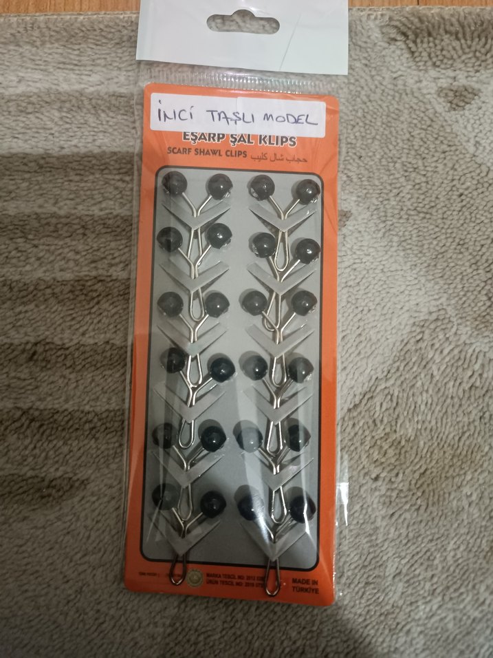 Siyah inci taşlı eşarp ve şal klipsleri. Şalları sabitlemek için kullanılır. 12 adet paketlidir.
