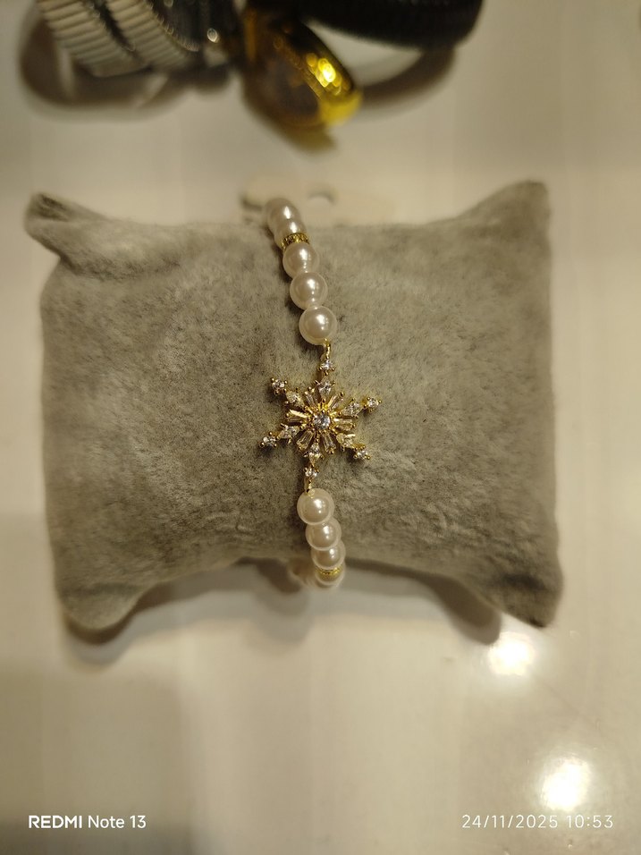 Bohem tarzda, altın renkli boncuklar ve işleme detayları bulunan, düğünler için uygun rahat ve şık bileklik. ✨