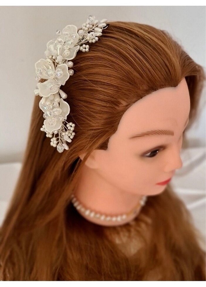 İnci ve Boncuk Detaylı Beyaz Saç Aksesuarı