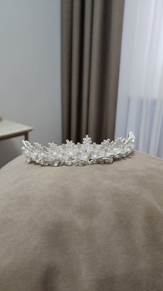 İnci ve boncuk işlemeli beyaz gelin tacı bir kez düğünde kullanıldı normalde pahalıya satılıyor