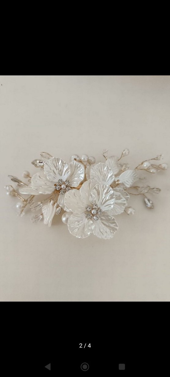 Kadınlar için inci ve cam detaylı, modern klasik tarzda, ışıltılı ve zarif beyaz saç aksesuarı. sıfır ürün
