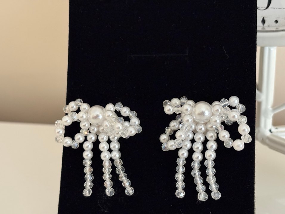 İnci ve Kristal Boncuklu Fiyonk Küpe