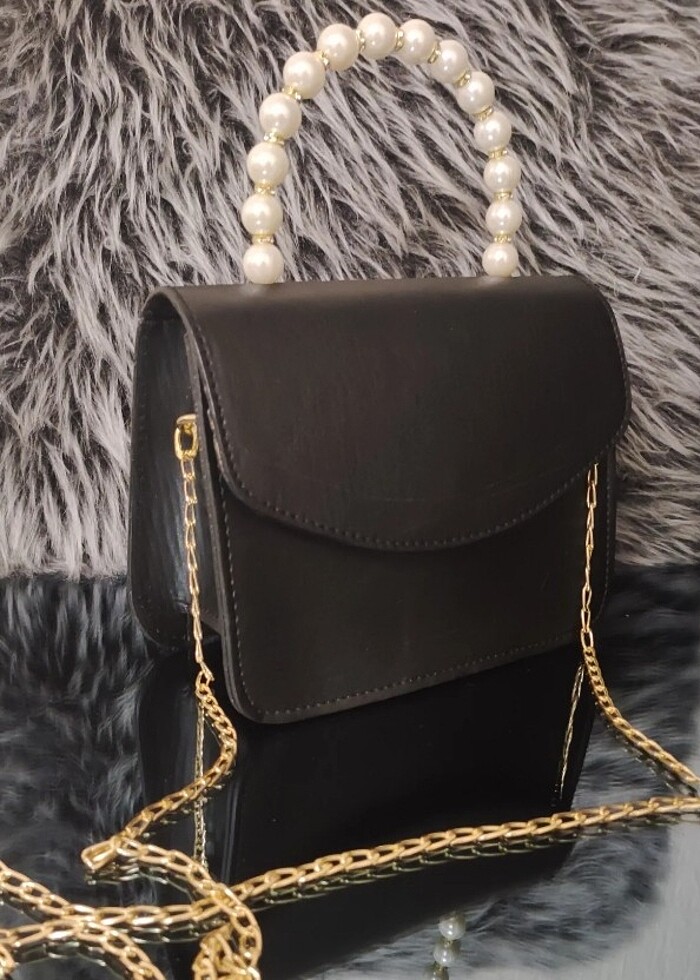 İnci ve taş detaylı ??????? siyah zarf kare el çantası ????
