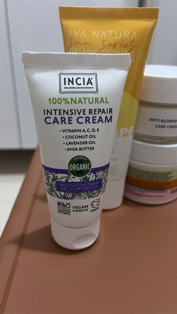 Incia Yoğun Bakım El Kremi, shea yağı, hindistancevizi yağı, lavanta yağı ve A, C, D, E vitaminleri içerir. Kuru ciltler için yoğun onarım ve nem sağlar. Birkaç kez kullandım lavantadan kaynaklı kaşıntı oluştu cildimde o yüzden satıyorum nemlendirmesi güzel