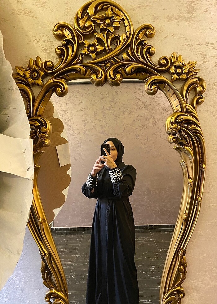 İpek saten kumaştan özel dikim kolu inci detaylı abaya standart beden