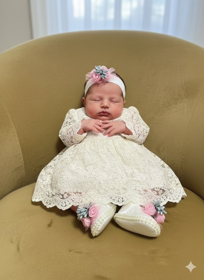 Prenseslere Layık İlk Adım Seti! Bebeğinizin en özel günlerinde (Mevlüt, Doğum Günü, Hastane Çıkışı) ona eşlik edecek zarafet dolu bir set. Yumuşacık dokusuyla minik ayakları yormaz, şıklığıyla göz kamaştırır. ✨ Set İçeriği: 1 çift inci detaylı ayakkabı ve uyumlu çiçekli bandanadan oluşmaktadır. pembe gül detayları ve gümüş pırıltılı süslemelerle zenginleştirilmiştir. Yumuşak tabanlıdır, bebeğinizin ayağını sıkmaz. İnci Süslemeli Çiçekli Bebek Ayakkabı ve Bandana Seti Bebeğinizin özel gün kıyafetlerini tamamlayacak, estetik ve konforlu bir settir.Ekru/Beyaz üzerine Pembe Çiçek detaylı. Bebek cildine uygun, yumuşak malzemeden üretilmiştir. Detaylar: Ayakkabı bilek kısmında ve taban çevresinde kaliteli inci işlemeleri mevcuttur. Cırt cırtlı yapısı sayesinde kolayca giydirilir. Kullanım Alanı: Mevlüt, düğün, dış çekim ve özel davetler için idealdir.(Sıfır Ayarında) sadece özel bir günde kısa süreliğine kullanılan çok temiz bir settir Bandanası esnektir, bebeğin kafasını acıtmaz.