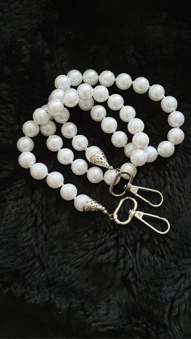 El emeği incili çanta sapı. 85 cm uzunluğunda, omuza taktığınızda ideal boyuttadır. İnciler büyüktür, 14 mm.