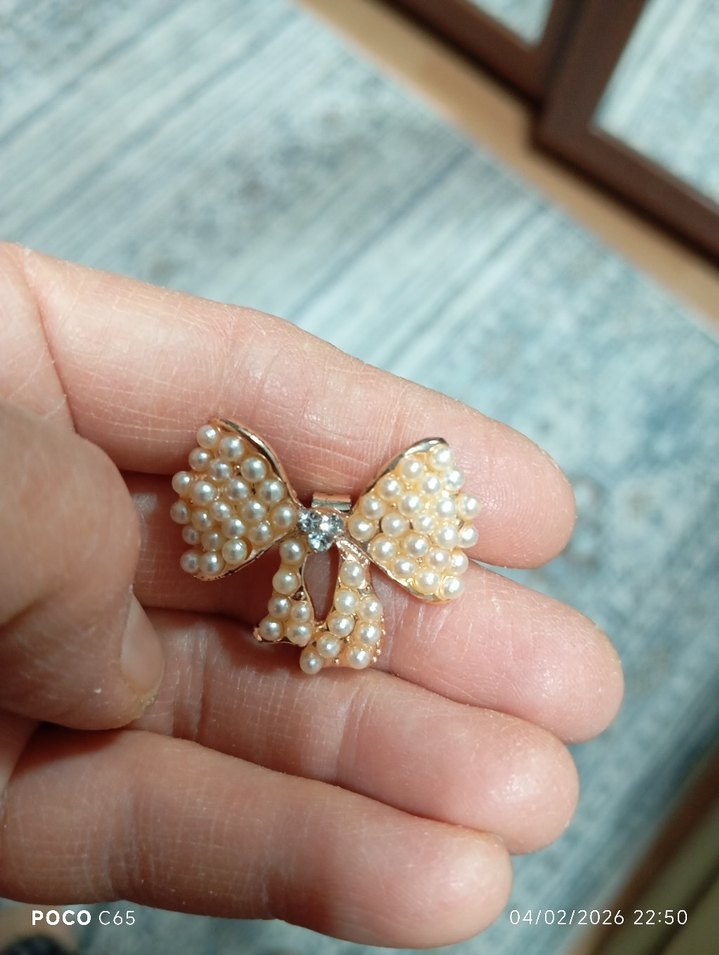 incili fiyonk saç, çanta vb. süsleme tokası.