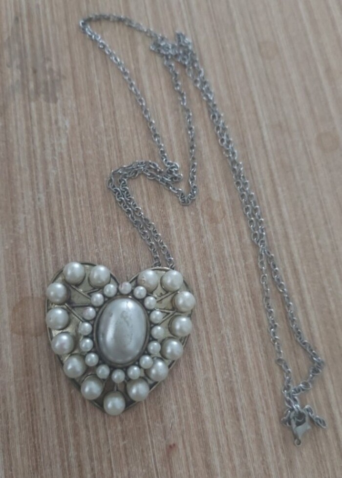 İnci kalpli metal uzun zinciri kolye ingiltereden hediye olarak geldi