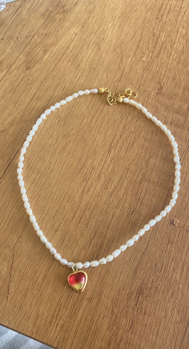 Bohem tarzda, kalp figürlü beyaz inciden oluşan midi uzunlukta kolye. markası Boleyn Crystal