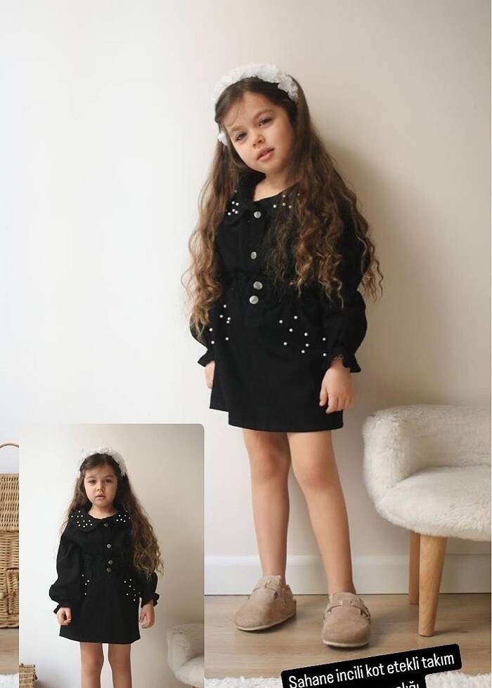 İncili kot ceket etekli takım