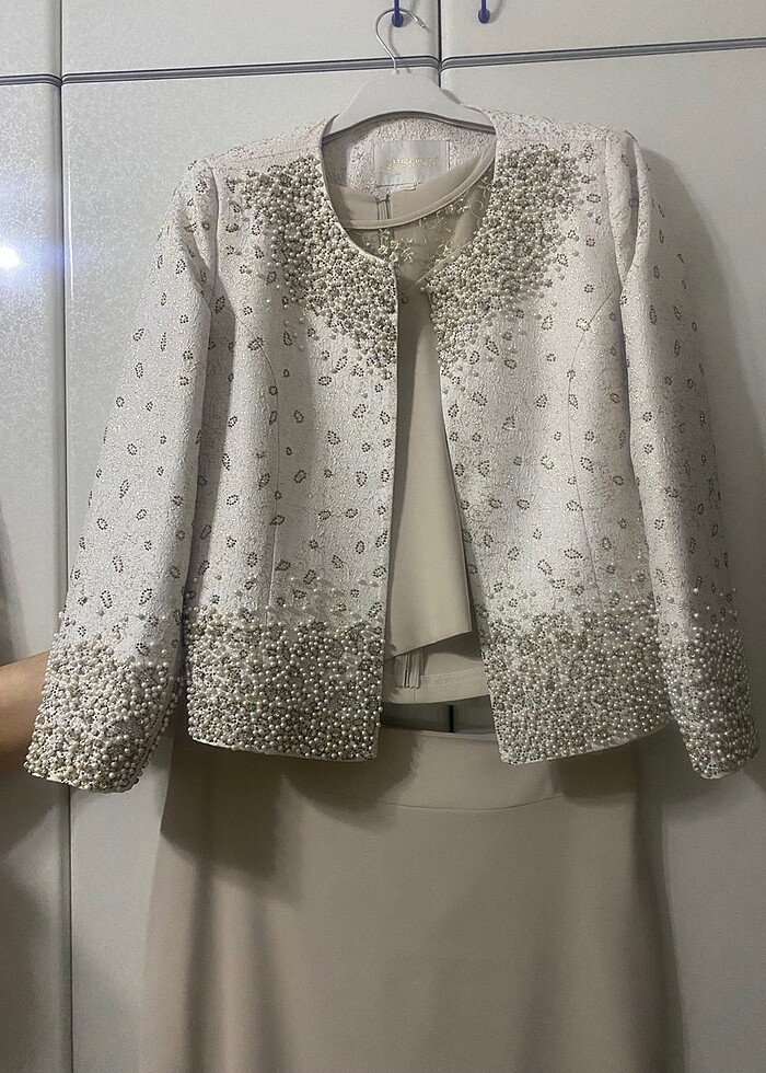 Sıfır üründen farksız. İnci detayları çok şık bir ceket ile davetlerde şıklığınıza şıklık katacaktır. Büyük bedende şıklığı çok rahat yakalayabilirsiniz. Tesettüre uygun. 44 beden. Tam kalıptır.