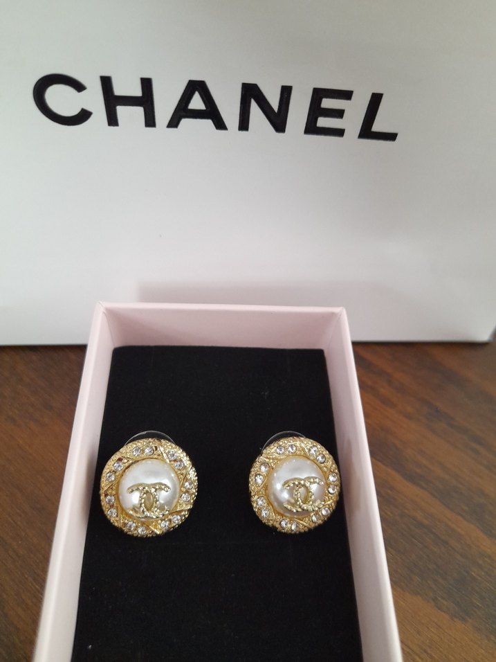 Altın renkli, pul işlemeli mini incili Chanel küpeler, modern klasik ve zarif düğün stillerine uygundur. Dubai ithal ✨. 1,5cm Hediye kutusu ile gönderilecektir. Gardropsumdaki diğer ürünlere bakmadan geçmeyin. #chanel #küpe #inci