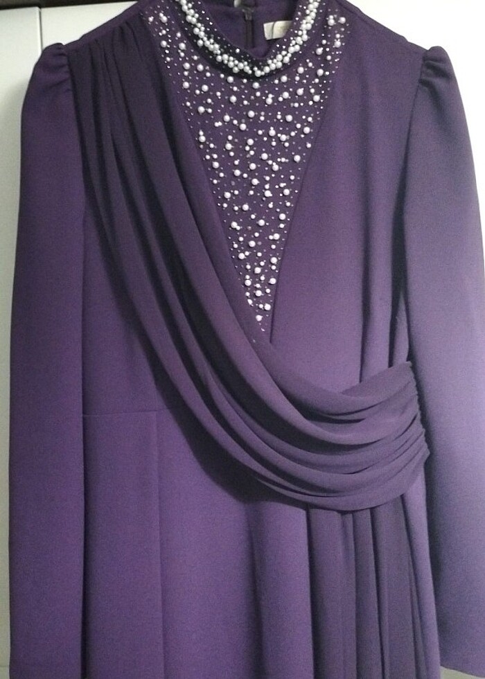 İncili mor tesettür elbise