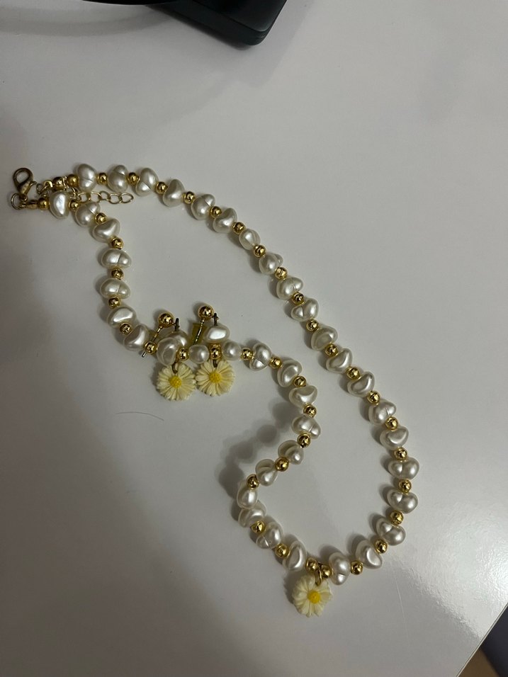 İncili Papatyalı kolye