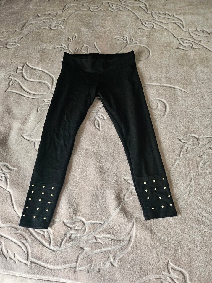 Incili detaylara sahip siyah, midi boy, vücuda oturan kadın tayt. Yumuşak ve sıcak kumaştan, günlük kullanıma uygun.
