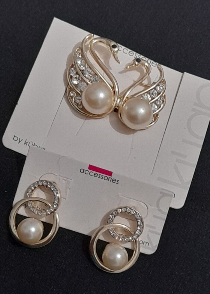Sade ve şık İnci detayı olan küpe ve broş sıfır ürünler