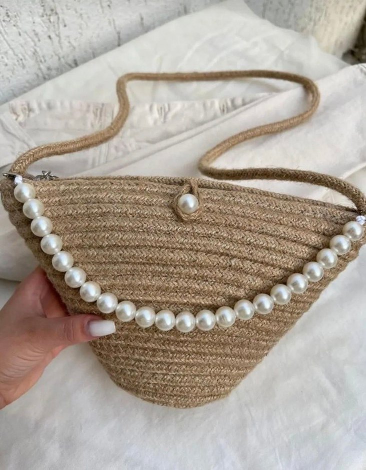 İncili tasarım omuz çantası, fermuarlı marka temsili