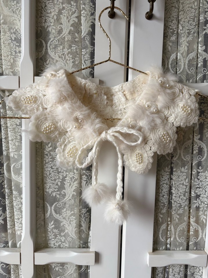 İnci işlemeli ve beyaz ponpon detaylı kışlık yakalık.