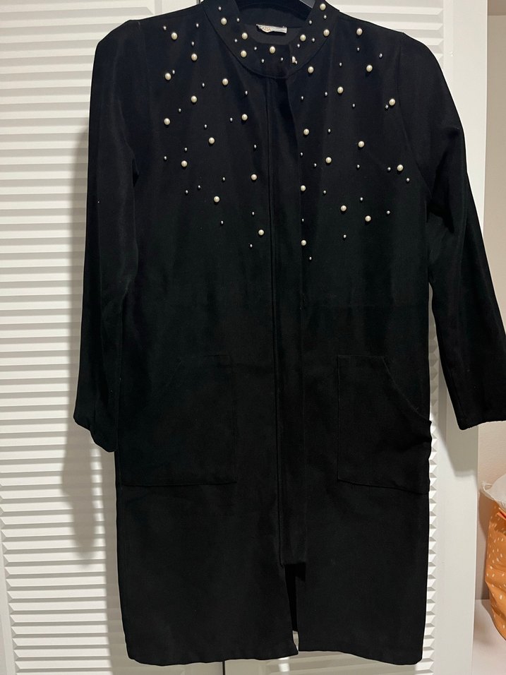 İncili siyah trenç kadın boy 96 cm xl beden