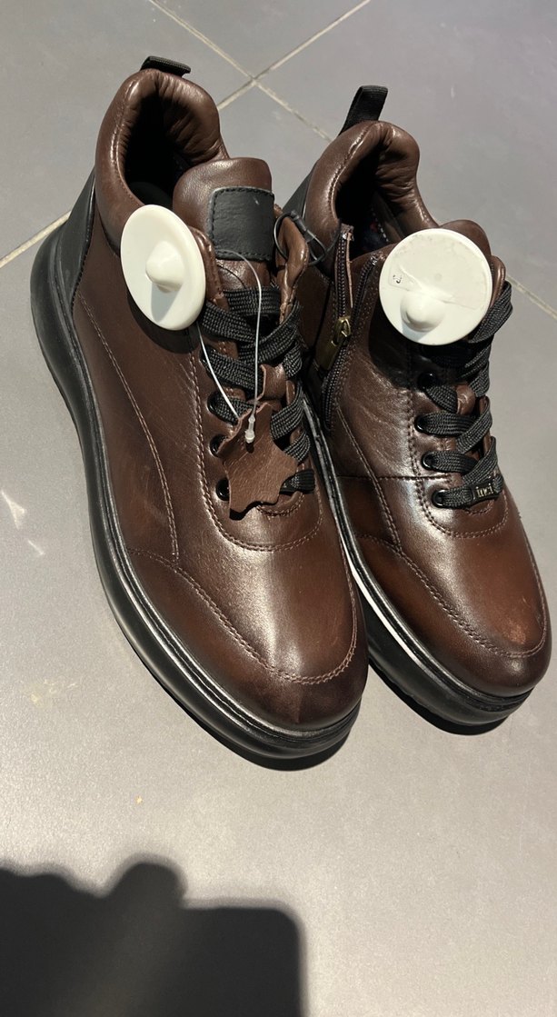 Erkekler için koyu kahverengi ayakkabı bağcıkları, sokak stili ayakkabılara uygun şekilde tasarlanmıştır.