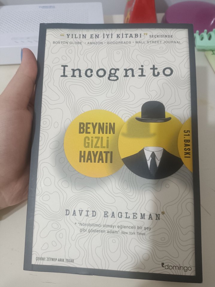 David Eagleman'ın "Incognito" kitabı beynin gizli yaşamını ve zihnimizin perde arkasında nasıl çalıştığını anlatıyor. 51. baskı, Zeynep Arık Tozlu çevirisi. orjinal kitaptır temiz okudum.