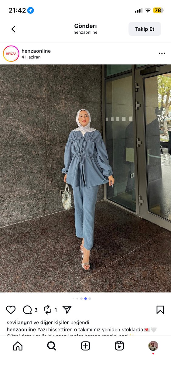 Gri denim kumaştan, bağcıklı ve bol kesim kadın takımı. Uzun kollu, yüksek yakalı ve bağlama detaylı midi boy, günlük rahat stil için uygundur. İki kez kullanılmış yeniden farksız temiz #manuka #toucheprive