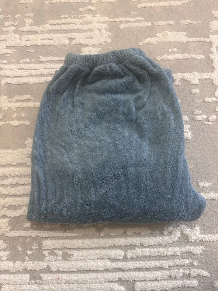 İndigo renkte peluş pijama. Kışlık ve kalın olmasın kışın sıcak tutar. Lastik bel 33 santim lastik açılma 60 santim kalça 60 santim basen 31 santim paça genişlik 22 santim. İçersinde beden yazmaz. Ölçülere göre alım yapınız.