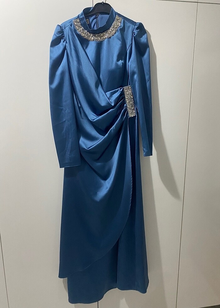 İndigo saten abiye