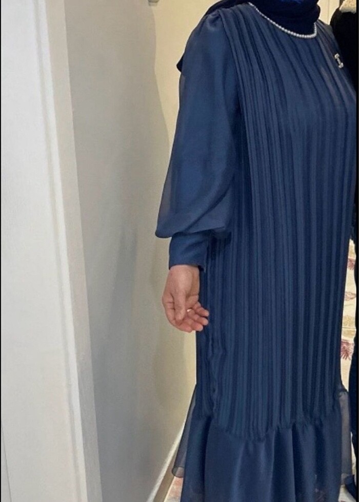 Annem 1 kez nişanımda giyidi 44-46 beden uyumlu hatta 48 bedene bile olabilir esnek hat belli etmeyen rahat bir elbise.