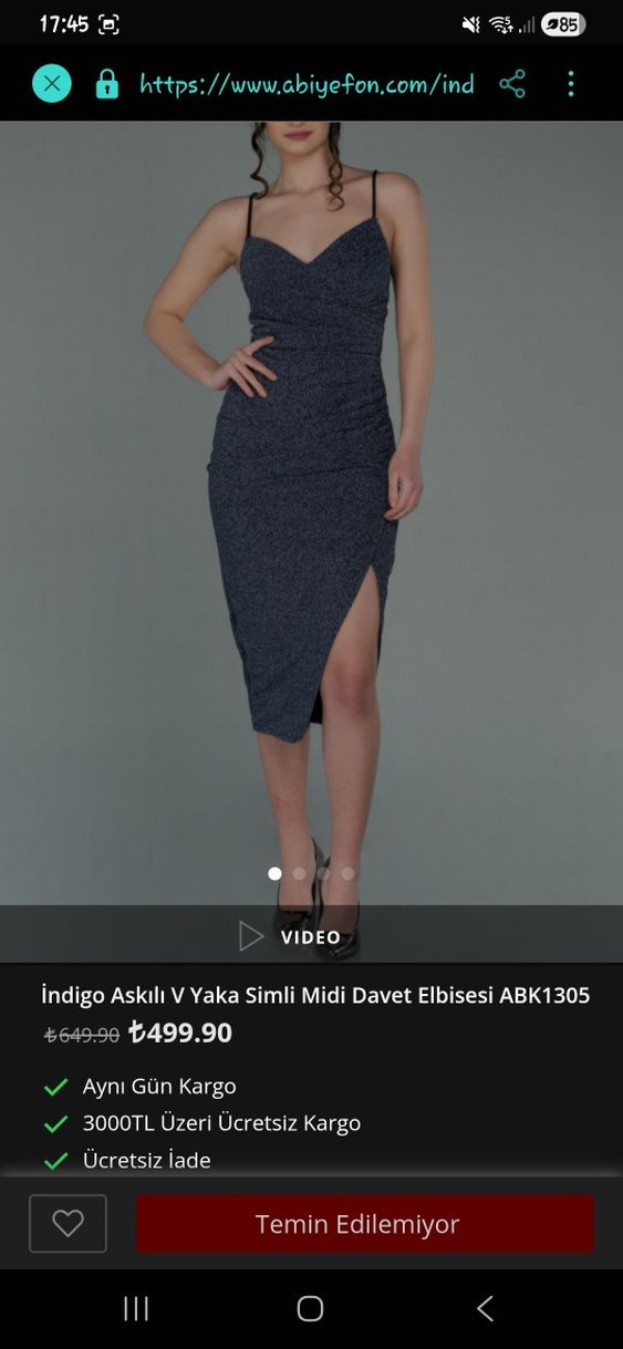 Gri, simli kumaştan, V yaka ve askılı, drapeli, yan yırtmaçlı, vücuda oturan midi abiye elbise. Romantik akşamlar için ideal. ✨