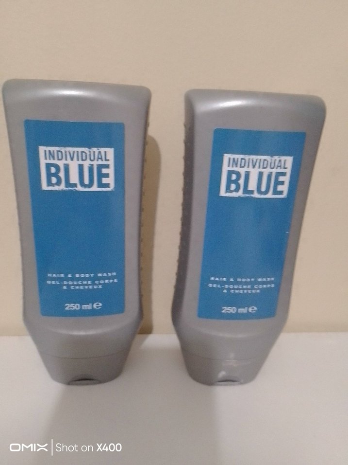 Individual Blue erkekler için 250 ml saç ve vücut jeli. Gri şişede mavi etiketli, minimalist tasarımlı ve ferah kokulu.