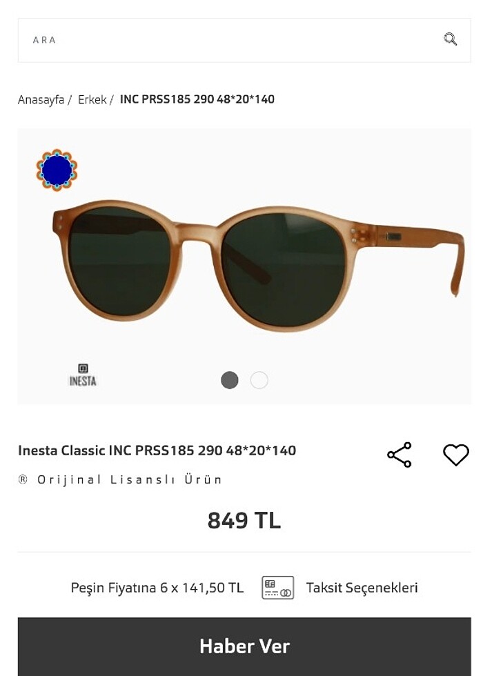 İnesta prss185 c290 Orijinaldir. Unisex gunes gözlüğü. Atasun optikten alindi. SIFIR ÜRÜN