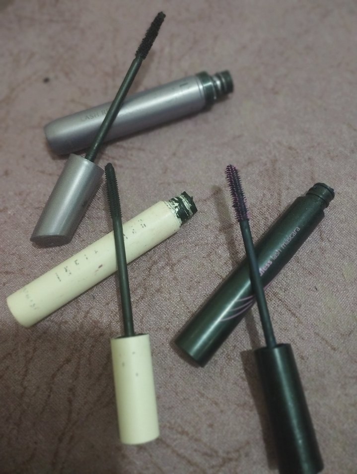 kullanıma bağlı ambalaj yazıları silindi az bir kuruması var fırça tasarımlarına sahip üç gri maskara seti. Her tüp, farklı tonlarda gri maskara sunar.