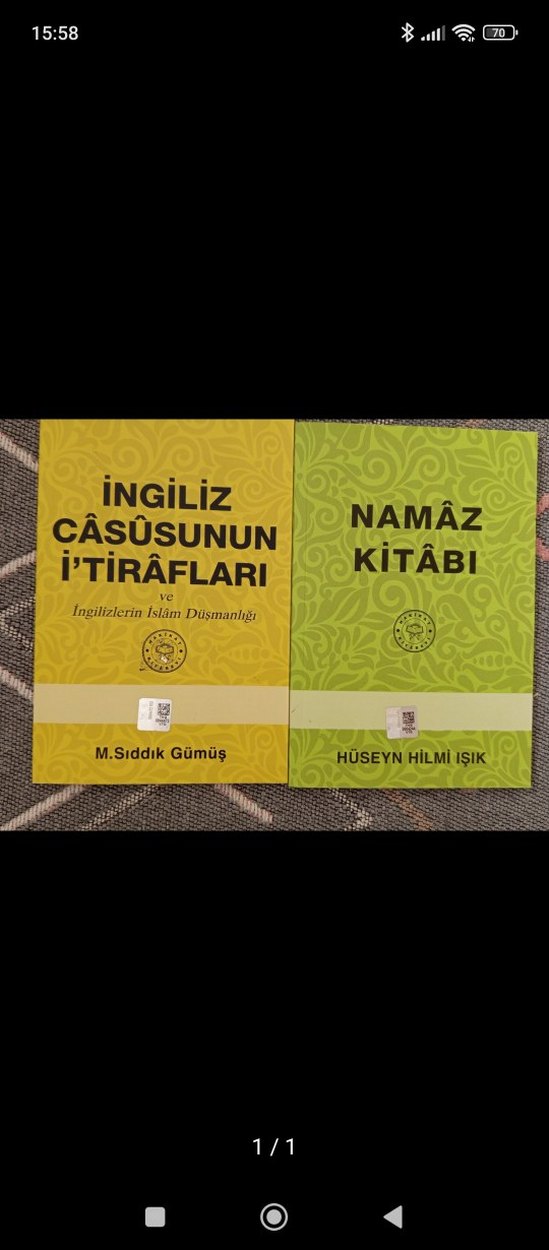 İngiliz Casusunun İtirafları ve Namaz Kitabı adlı Osmanlıca iki kitap, geleneksel kapak tasarımlarıyla yer alıyor.