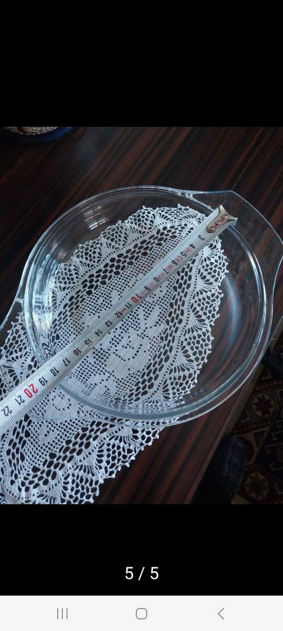 Beyaz yuvarlak cam fırın kabı, çapı 22 cm, pişirme ve servis için uygundur.