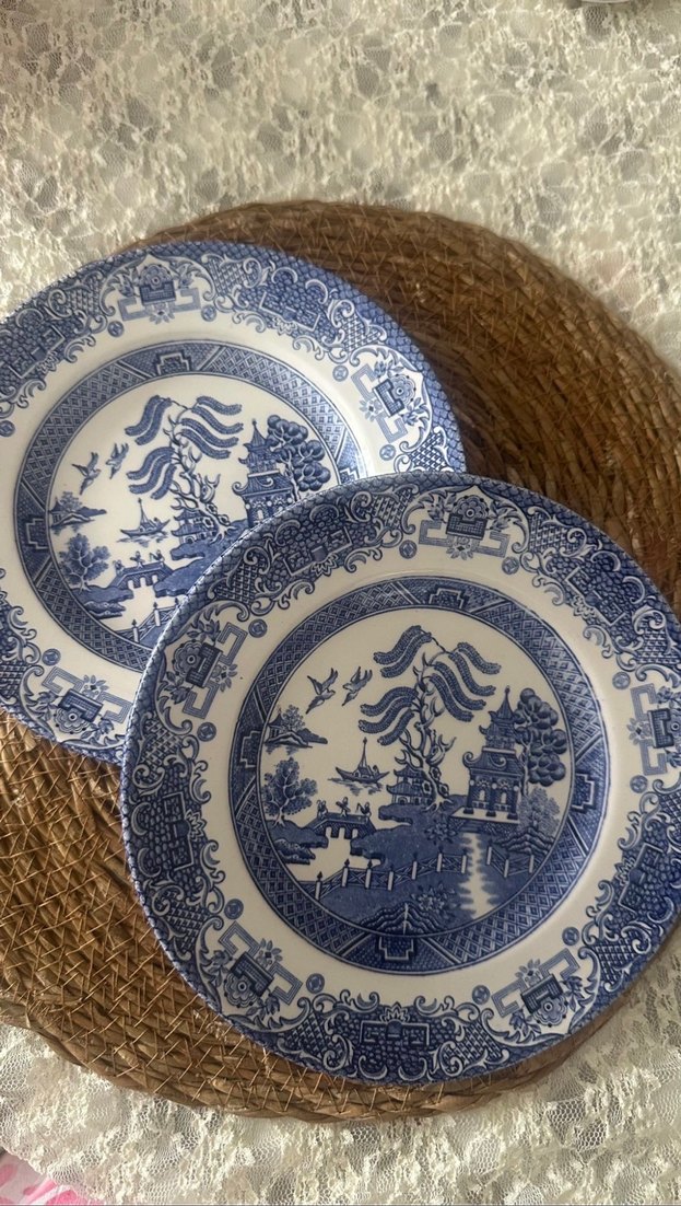 Mavi parlak yüzeye sahip, geleneksel desenlerle süslenmiş yemek tabakları. ️ *2 adet fiyatıdır tekli alım için ilan açtırınız