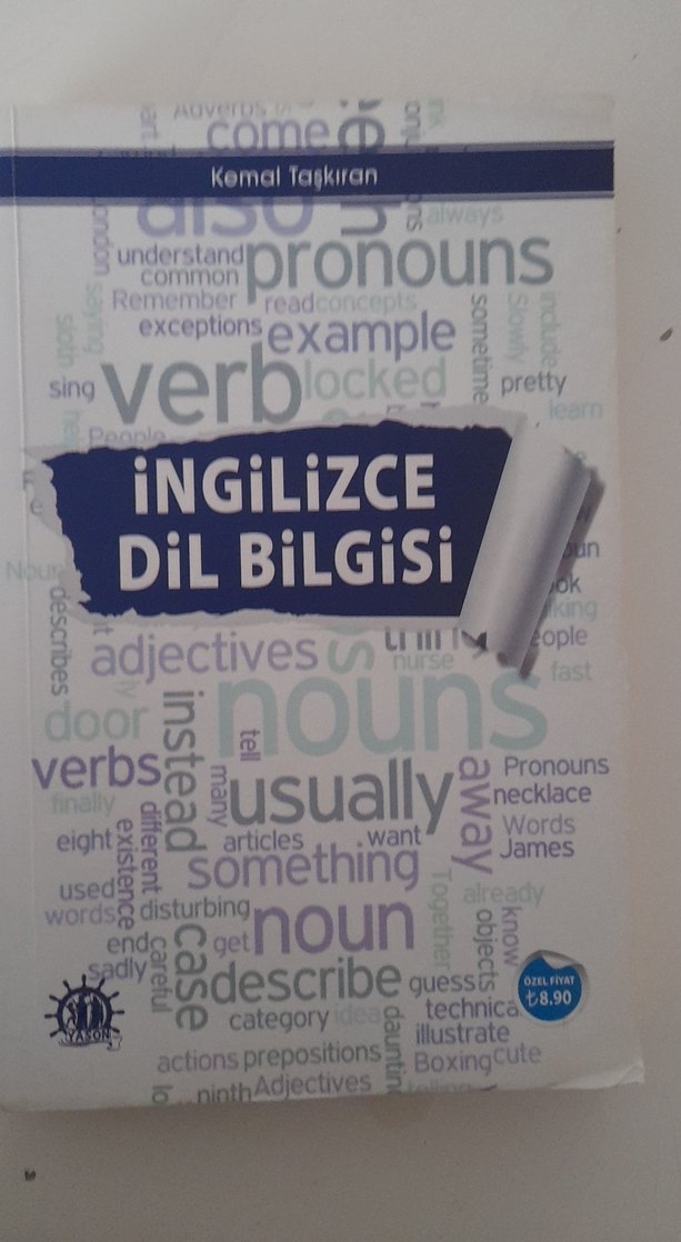 Mavi ve gri renklerde, İngilizce gramer kuralları kitabı. ingilizceye giriş